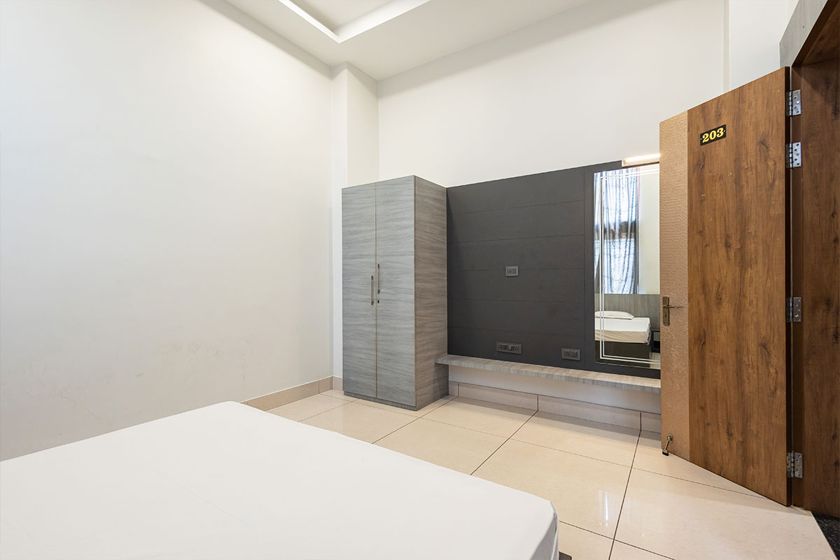 Simple, cozy stays for every occasion The Deluxe Rooms at Maryada Maitri Resort are thoughtfully designed to offer comfort and convenience for guests seeking a cozy stay. Each room features air-conditioning, an attached bathroom, tiled flooring, and essential amenities like a wardrobe and seating space. With neat interiors and practical design, these rooms provide a peaceful environment for travelers and families.